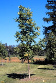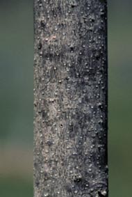 The Black Ash has a tall trunk with a fairly uniform diameter up to the branches. The soft, ash-gray bark is fissured into scaly plates, which easily can be reduced to powder by rubbing. The Black Ash is a tree of wet places. It favors the wet soils of cold swamps, peat bogs, and stream bottoms that periodically are flooded. This is a northern tree, the most northern of the ash trees. It grows in much of southeastern Canada, the Great Lakes Region, and the northeastern-most states. In Ohio most records are from the northern half of the state, although a few local records occur in the southern counties. The wood of the Black Ash is soft but durable and it separates easily into thin layers. Strips of split wood are used in making baskets, barrel hoops and chair bottoms. This has given rise to alternate common names of "Basket Ash" and "Hoop Ash." Carpenters also sometimes use the wood for interior finish.