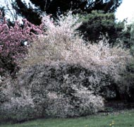 This group of trees is native to the northern temperate regions of the world. It includes the taller American Black Cherry, and many other species and horticultural varieties. The profusely flowering varieties from eastern Asia typically flower in the early spring before new leaves develop. Those from North America and Europe bloom a little later, producing flowers and leaves at about the same time. Landscapers primarily use these trees for their floral value. The Japanese Cherry trees around the Tidal Basin in Washington, DC are probably the best known example of this in the U.S.