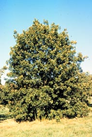 A champion specimen of the Mockernut Hickory in Morgan County, Ohio measured 88 feet tall in 1964. The gray bark of this tree is marked with branching ridges and deep furrows. The twigs are stout and reddish-brown to grayish-brown in color. This tree grows well on rich, moist, well-drained soils of upland areas, and sometimes is found on flood plains. It occurs in various kinds of hardwood forest and often is found growing with oak trees. It almost always occurs in small numbers compared to other species of trees. The Mockernut Hickory grows throughout most of the eastern United States and westward to eastern Texas. It is most common in the southern part of its range. In Ohio it occurs mainly in southern and eastern counties. As with the Shagbark Hickory, the wood of this tree is hard, strong, tough and elastic, and is used in handles for tools and in athletic equipment. The unusually small kernels from the nuts are sweet and edible.
