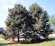 Young trees have yellowish-brown bark, but this darkens as the tree grows. Old trees have distinctive, furrowed bark colored with patches of brown, white and gray. The Austrian Pine often is confused with our native Red Pine, but the latter has reddish-brown bark as well as other distinctive traits. The Austrian Pine is native to central and southern Europe, and Asia Minor. Originally introduced from Europe in the mid-1700s, this fast growing pine is widely planted as an ornamental. It is easily established and tolerates city conditions better than most other kinds of pine trees. In Ohio, landscape workers commonly plant this tree in parks. Also, it is found in some of our state forests.
