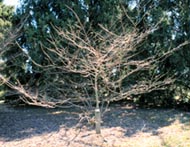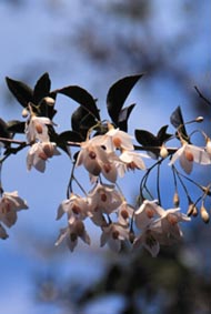 The relatively small Japanese Snowbell is native to China and Japan. It originally was brought to this country in 1862. The gray bark is smooth. The branches spread widely, often to twice the height of the tree, and they give the tree a flat-topped appearance. The flowers appear after the leaves are fully developed, and they hang beneath leaves, twigs and branches. The Japanese Snowbell prefers acid, moist but well-drained soils with lots of organic material. Landscapers and gardeners plant this tree as an ornamental. There are several varieties of the tree, including a heavily textured form that was introduced in 1985 from Korea by the U.S. National Arboretum.