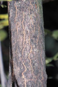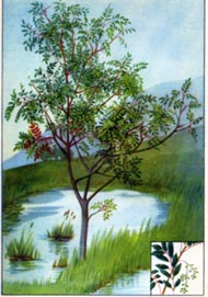 Look at a tree book if necessary, but learn how to know this dangerous tree before you touch any sumac! The Poison Sumac tree generally is somewhat taller than the Dwarf Sumac, but smaller than the Staghorn Sumac. As with the other sumacs it also grows as a shrub. The bark is gray to blackish and either smooth or slightly streaked. The sap is clear, but quickly turns black when exposed. The fruits are distinctive: white, shiny, and waxy berries. All parts of the tree, including the sap, are poisonous! One author describes this poison as "a violent skin irritant," and he says that "Some persons are more susceptible to the poison than others." Another author describes this as "One of the most dangerous North American plants [that] for many people, causes a rash upon contact." And it must be noted that any contact from the Poison Sumac with eyes, mouth, or nostrils would be extremely dangerous! In any case, a person who even suspects contact with any part of the Poison Sumac plant should wash the exposed skin at once and thoroughly with strong soap and water. A physician's advice should be sought as well. The Poison Sumac grows in wet soils such as in bogs, swamps, and swampy woods. Also it can be found in flooded areas and in shaded hardwood forests. The tree is found in parts of eastern North America from southern Ontario to eastern Texas, especially in the coastal plains and the Great Lakes region. In Ohio it grows mainly in the northeastern part of the state, but also southward in isolated bogs. The Poison Sumac has no commercial value. Since the tree often is considered to be attractive, some people might be tempted to transplant it as an ornamental. That would be a very unwise thing to do! The fruit of the Poison Sumac, however, is not toxic to birds and mammals. Many kinds of wildlife, including quail, pheasants, grouse, and rabbits, feed on the fruit, especially in the winter.Poison! Do Not Touch!