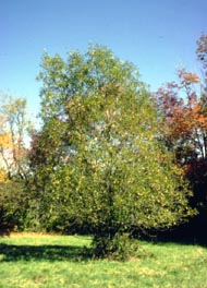 Although commonly occurring as a large shrub, the Shining Willow sometimes is found as a tree with a short trunk. The bark is smooth and light brown to reddish-brown in color. The natural habitat of this tree is stream banks and swamps. The Shining Willow ranges in southern Canada from Newfoundland to Manitoba, and southward in the U.S. to Pennsylvania and Nebraska. In Ohio it grows in the northern half of the state. Although the wood of this tree has no commercial value, people have employed parts of the tree for useful objects. Some people have used the tough, flexible branches to make a sort of cord or rope. Others find the inner bark useful for making fish lines and fish nets. The main use of this tree, however, is in ornamental plantings and in preventing stream bank erosion. Some landscapers consider it to be the most attractive of our native willows.